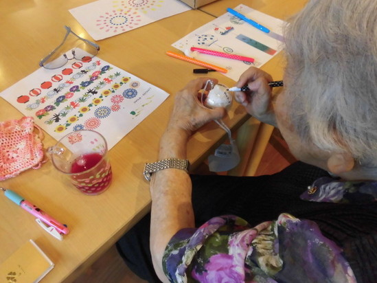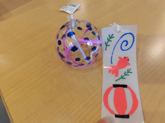 みなさん、思い思いに好きなように見本などを見ながら絵を描いていただき、一つだけのオリジナルの風鈴を作っていただきました
