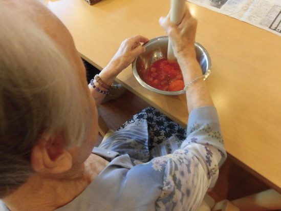 そんな中デイでは、庭で作った野菜を使ったお料理会をしました