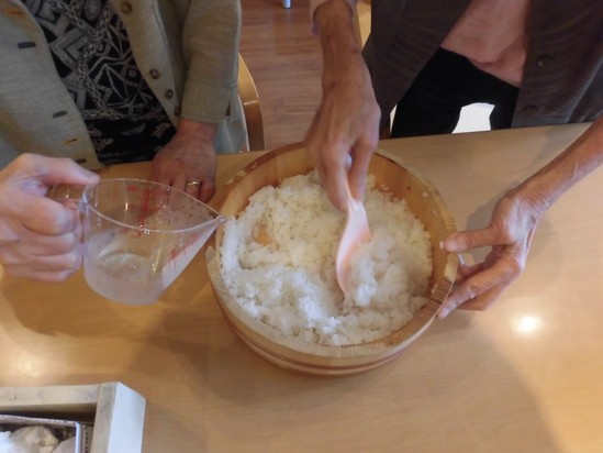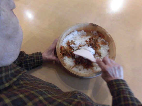 良い手つきで、ごはんを混ぜていただいております。