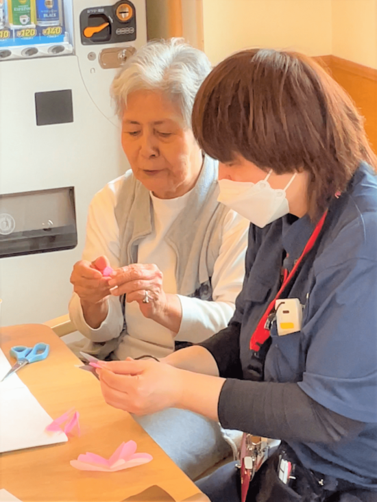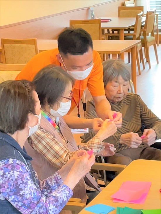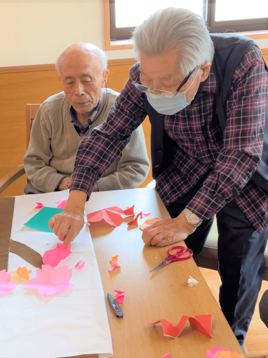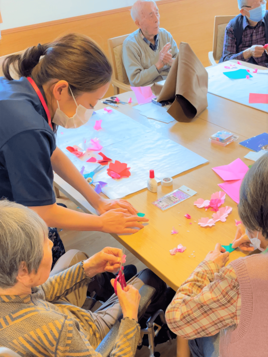 スタッフも参加してひたすら桜の花びら作りに勤しみます(;^ω^)