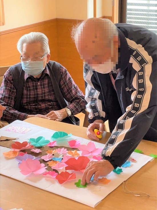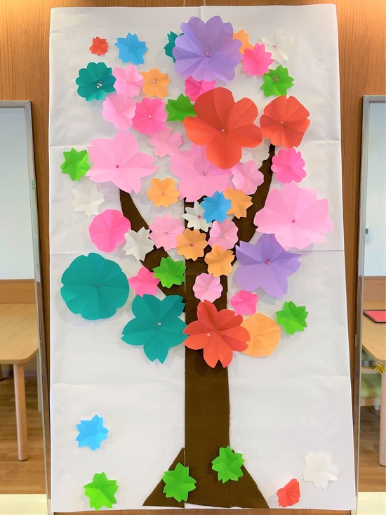 みんなで作り上げた桜の木は色とりどりの花びらで満開になりました