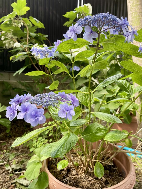 デイサービスの庭には紫陽花が綺麗な花を咲かせています