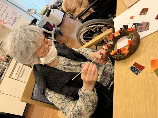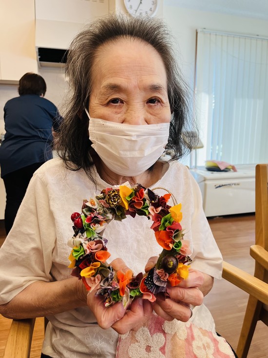 2024年10月11日(金) デイサービスでリース作り♪ こんにちは!アルファデイサービスセンター吉島通りです(^^♪ 今月の創作活動は秋のリース作り 初めは「こんなんできんよー」とおっしゃられていたご利用者様も、 作り始めると時間を忘れ夢中で作られていました。 世界に一つだけのオリジナルリースができ、みなさんとても喜ばれていました(*'▽')