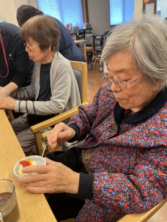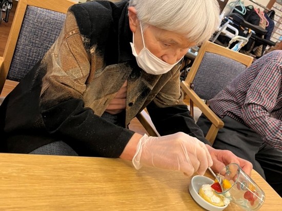 2024年12月29日(日) デイサービスのクリスマス会♪ ケーキ作り編! デイサービスの2024クリスマス会ブログ第2弾! こんにちは!アルファデイサービスセンター吉島通りです(^^♪ クリスマス会の最後はみんなでクリスマスケーキ作り♪ ご利用者様にそれぞれにケーキの土台、クリーム、フルーツをお渡しし、トッピングをしていただきました! 美味しいね!クリスマスソングを聴きながらみんなで楽しくいただきました(*'▽') 皆さまにクリスマス気分を楽しんでいただけて良かったです またご利用者様に喜んでいただける企画をしたいと思います!!