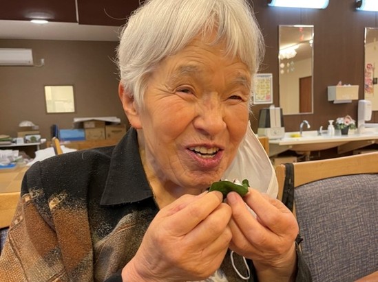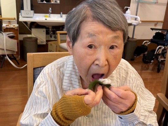 2025年05月15日(木) かしわもちレク♪ こんにちは!アルファデイサービスセンター吉島通りです(^^♪今月も食協株式会社様の「やわらかごはん」を使ってイベントを開催しました♪5月のイベントはこどもの日にちなんだ『かしわもち』作り やわらかごはんをお餅に見立ててまん丸に形成してあんこを包みます! かしわの葉で包めば出来上がりヽ(*'▽')/ 皆さま、笑顔でお召し上がりいただき、私たち職員も嬉しい時間となりました♪