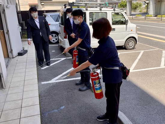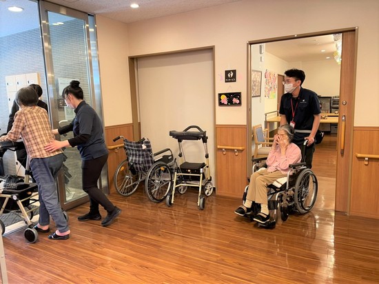 今回は「火災が起きたらデイサービスの利用者さんをどうやって誘導する?」を想定して訓練!