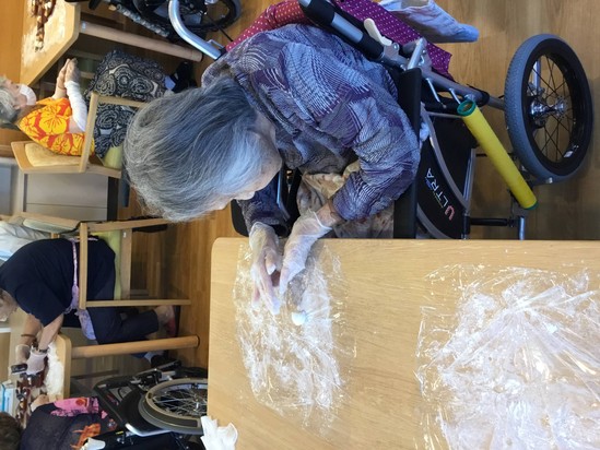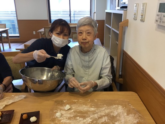 ご自分のお部屋で職員とマンツーマンでお団子を作る方も・・