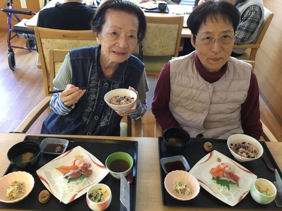 お 食事を提供すると「今日は何の日?」「おごちそうや」と言われていました(^^)