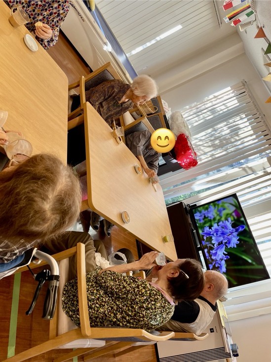 パン食い競争で自分で取ったパンでティータイムです(^^♪