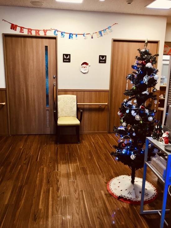 入居者様がデイサービスで作ったクリスマスツリーも飾りました!