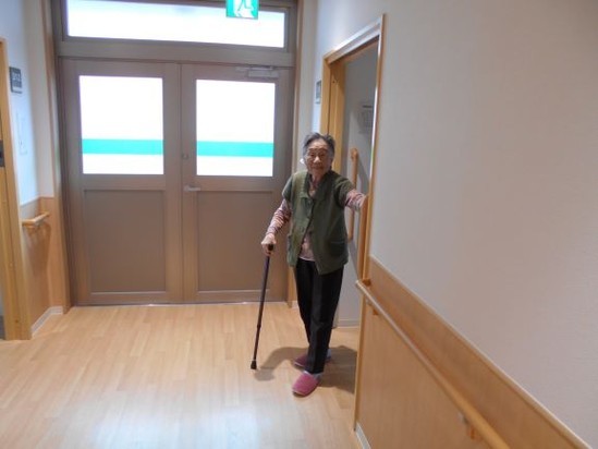 廊下でS様が廊下をお散歩 しているところに出会いました