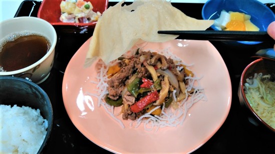お出しした昼食に、入居者様一同「どうやって 食べるの?」と (笑)