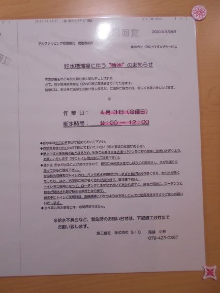 貯水槽清掃のお知らせ!!