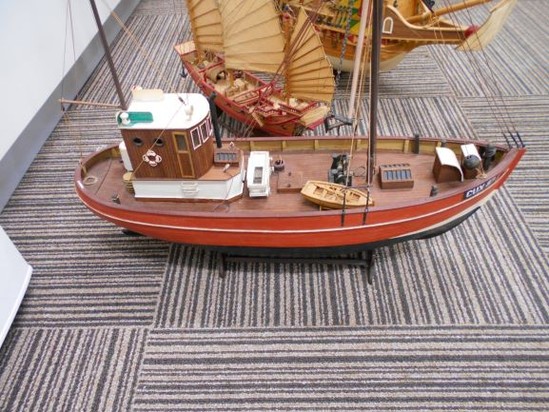 沢山の趣味の船の作品で飾っていると入居者様は「すごいね」「こんなのどう
