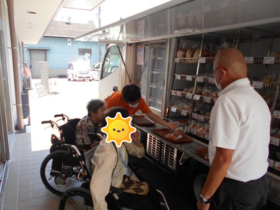 2020年08月26日(水) まほろばパン訪問販売ヽ(^。^)ノ まほろばパンの移動販売が毎週水曜日にパンを販売に来てくださいます 入居者様もパン屋が来たことを伝えると次々に玄関に降りて来られ「美味しいの あるかな?」「今日はなに買おうかな?」と楽しそうにパンを選ばれています
