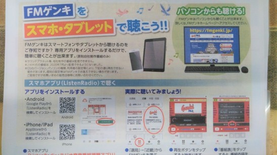 スマホやタブレットでも FMゲンキ を聴くことができますよ