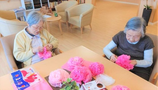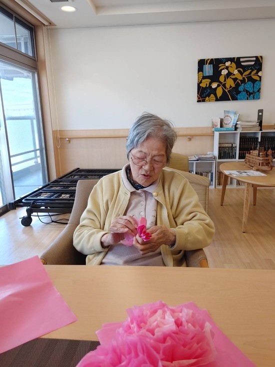 2021年02月25日(木) お花(*'▽') 今日は、お花を作成しました(*´ω`*) どんな大きさにしようかなぁ~ 一つ一つ丁寧に仕上げます(*^-^*) 出来上がり(*^-^*) 可愛いお花の完成です。 お2人の笑顔も素敵です!!