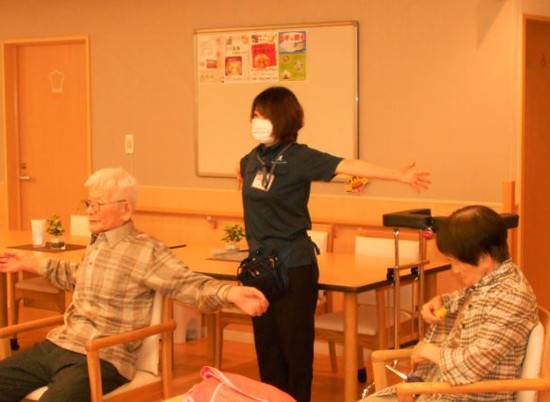2021年05月27日(木) 体操の日(*^-^*) またまた、体操の日がやってきました~ 入居者様も体を動かして気分もイキイキ 手の指を動かしたり、腕を伸ばしたり・・・ヾ(≧▽≦)ノ 先生と一緒に楽しい時間を過ごされました! スタッフも一緒に、のびのび~ 普段から体を動かし体操することを心掛けたいものですね (≧▽≦)