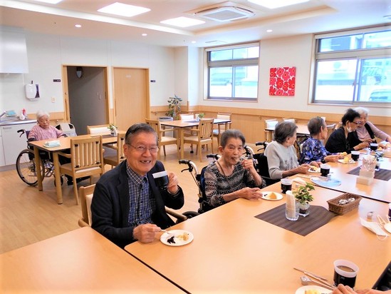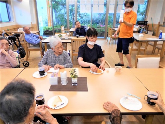 2021年06月26日(土) お茶会 楽しい(^^♪ お茶会に参加された皆様 にっこりと笑顔で、カメラに映りましょう にっこりと笑顔で 楽しそうですね コーヒー & ケーキ でホット一息 ちょっとしたゲームと、コーヒーとケーキ 今後もつづきますよ~~ お茶会