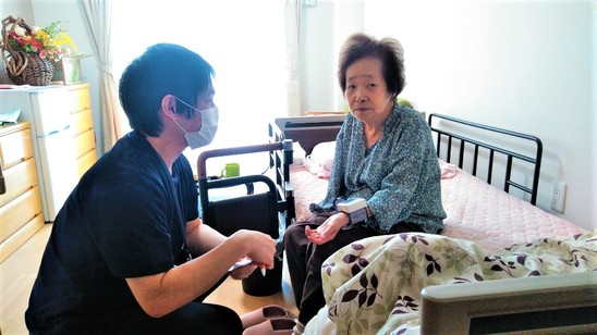 まずは、本人様と顔を合わし、本日の体調確認を