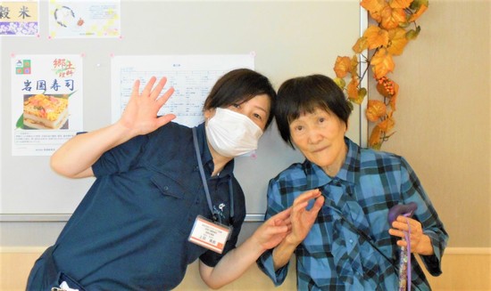 まだまだ途中ですが、秋の飾りつけの途中で、入居者様との記念撮影