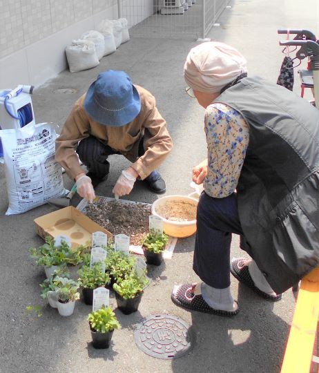2022年04月19日(火) ガーデニング( *´艸`) 今日は、とてもいいお天気でガーデニングして頂きました(^^♪ 皆さん、久しぶりの土いじりでとっても楽しそう 何から植えようかなぁ~ 鉢、もう少し必要ですね!! あと少し…またの楽しみに取っておきます。 可愛いお花が咲きそう