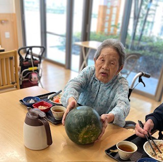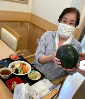 施設長がスイカを持って来て下さり、皆さんと夏を楽しみました!