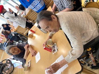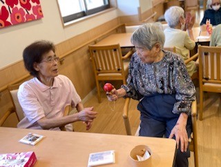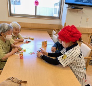 2024年08月26日(月) ~たこ焼き②~ たこ焼きの日にチョコっとゲームも行いました(*'ω'*) どんなゲームか皆様、興味津々 スタッフと一緒に とぉ~っても楽しそう(≧▽≦) ちょっと休憩 入居者様どうし一緒に 楽しまれました!
