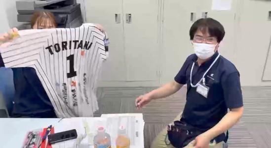 たこやきパーティで大事な宝物のユニフォーム披露して下さり