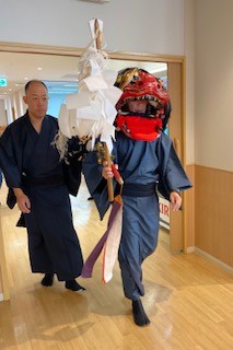 2024年10月13日(日) ~秋祭り~ 秋祭りの季節ですね。 城北にも獅子舞来てくださいました! 施設長と一緒にこっそり…(≧▽≦) あーなちゃんも すっかりお祭り気分です! また来年もお待ちしております(*´з`)