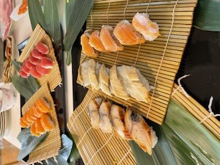 屋台で板前さんが華麗に握って下さって、皆さん見とれておられました。