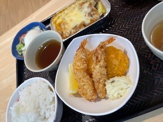大きなエビフライとグラタン