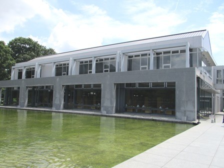 建物の前には、涼しげに水が流れており、暑い夏も少しさわやかに演出されています。