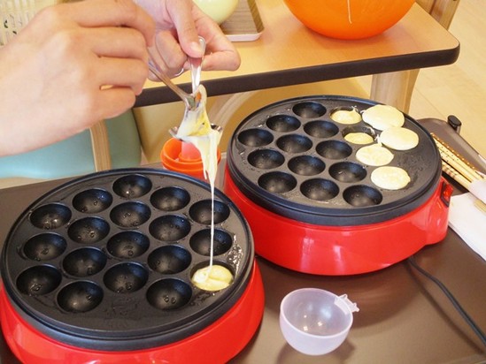 トッピングにはフルーツや生クリームにあんこを用意して、焼きあがった