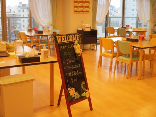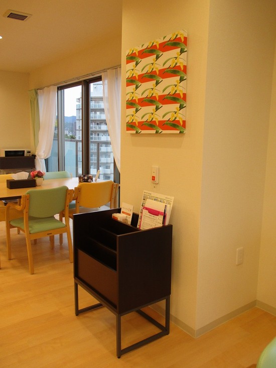 2016年08月17日(水) レストランに。 7階レストランにマガジンラック設置しました。 レストラン東側中央、メニュボードの奥に見えているのがラックです。 食事の時間以外もゆっくりとくつろげる憩いの場として利用出来るよう工夫 いきたいと思います。