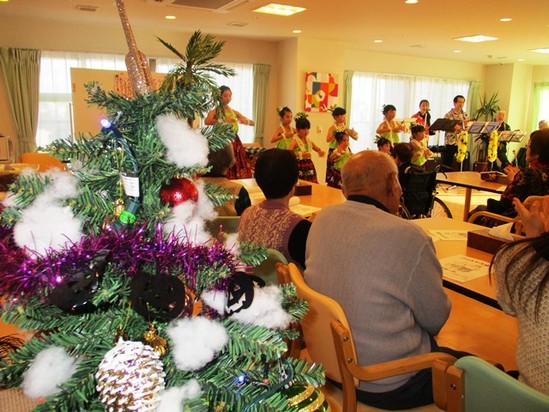 入居者様の娘様にご協力いただき、ボランティアさんにフラダンスとウクレレの演奏を披露していただきました。