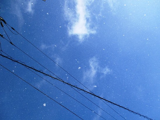 晴れているのに雪が降っている状態ですが、地域によっては「狸の嫁入り」と