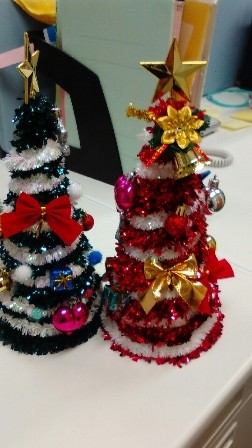 デイサービスの作業療法の時間に居室に飾るクリスマスツリーやリースを作りました