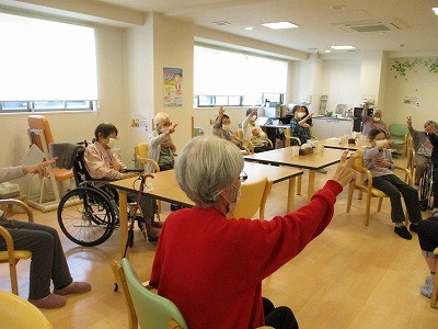 みんなで頭の体操・・・前がチョキで・・・・胸がパーで・・・・・
