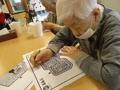 2020年07月31日(金) 迷路に挑戦~デイサービス~ 難しい迷路に挑戦されています!! 「あれ?行きどまった・・・・」と言われても、すぐに違う道を・・ 私も挑戦!!! 「これ、どうしましょう(;'∀')」 助けていただきました・・・