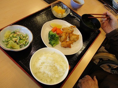 2020年12月13日(日) 唐揚げ定食 みんな大好き☆唐揚げ定食☆です!!! (^^)/パチパチ 「おいしいね」との声が聞こえてきそうです!! フルーツミックスもついて大満足♪ いつも、美味しいご飯をありがとうございます(#^.^#)