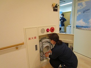初期消火のためにホースを取り出します。