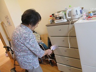 2021年09月18日(土) お掃除隊出動 お掃除に入っているヘルパーさんに出会いました!! 掃除機かけて、床拭きし・・・・・ 丁寧にお掃除させていただきます!! 出来るところは入居者さんにも手伝っていただきます( *´艸`)