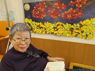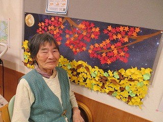2021年11月25日(木) 秋の壁面~デイサービス~ 秋らしい素敵な空間が広がっています!! 「すごいね~!!綺麗やんか!」とお褒めの言葉!! 笑顔に秋の景色が映えますね( *´艸`) 紅葉狩りには行けなかったけど、ここで見られて良かったわ♪ と喜んで下さいました!!