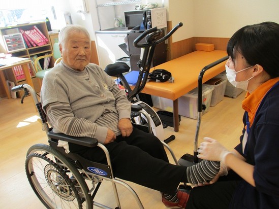 2022年02月22日(火) 足首を柔らかく!!!~デイサービス~ 看護師による訓練です(^^♪ 足首は知らないうちに固くなってしまっています・・・ 少しづつ圧をかけて柔らかくしていくと、歩きやすさ、立ちあがりやすさに繋がります(●´ω`●)