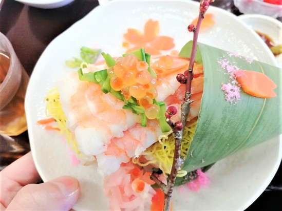 2022年03月28日(月) 昼食に春が来た ♪ 昼食に、春 がやってきました きれいに彩られた お寿司 (^^♪ きれいに盛り付けられた食事を前に、食欲全開 !!! さぁて、昼からもがんばろうっと (⋈◍>◡<◍)