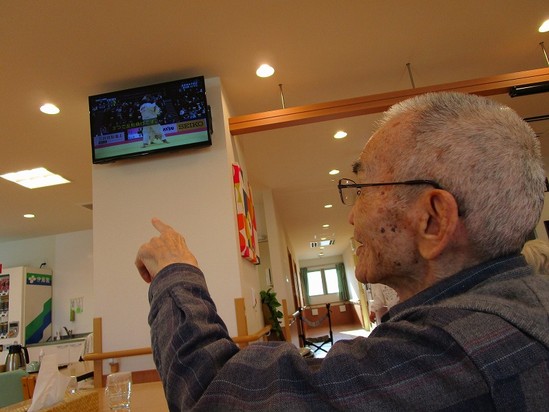 2022年04月28日(木) 食堂での一コマ 食堂での一コマ・・・・ 新聞を読まれている方やテレビを見ておられる方 「ええ勝負やで~!!」と教えて頂きました★ ご飯までの時間をこうやって過ごされています! 普段合わない方とも会ってお話の弾む時間でもあります(●´ω`●)