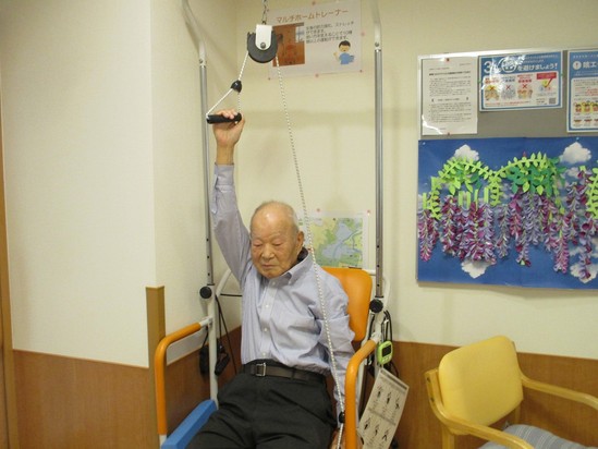 2022年05月23日(月) いつまでも元気に!!!~デイサービス~ レッグプレスで足の運動をされています! 負荷もその方に合わせて調整しており、膝を伸ばす目的の方から、筋力をつける目的の方まで・・・・・ 腕の滑車運動をしたり・・・・ 一人一人に合わせたリハビリを行っています(*´ω`*)