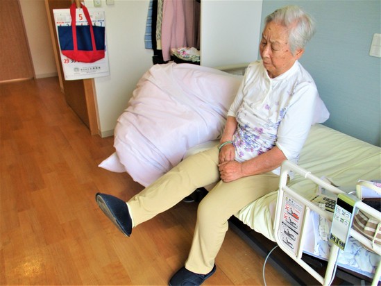 デイスタッフの提案で、居室内での運動を提供