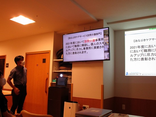 社長からのお言葉、部長からの次へのステップの提示、各管理者からの決意表明、施設長からの今後の方針・・・